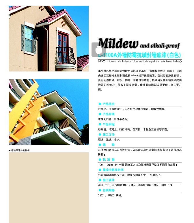 L-1100A外墙防霉抗碱封墙底漆(白色)