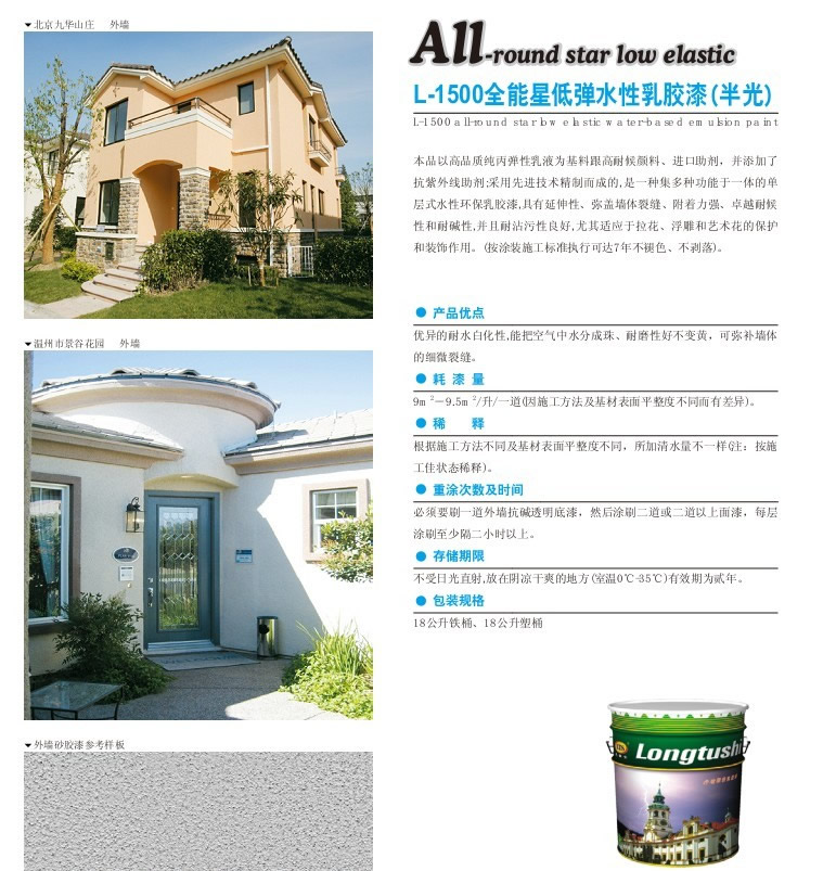 [←]L-1400豪华星高性能水性乳胶漆(哑光) [→]L-1600全天候中弹水性乳胶漆(有光)
